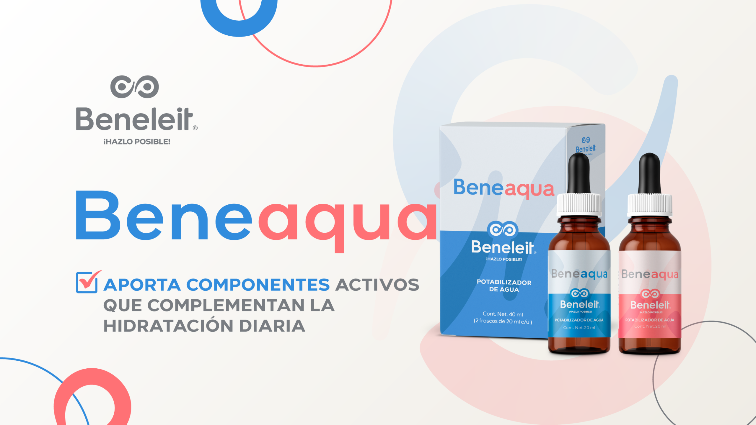 Beneaqua de Beneleit, es un potabilizador natural que puedes llevar a cualquier parte por su práctica presentación en goteros, ayudando a la desintoxicación, mejorando el sistema inmunológico y permitiendo la correcta hidratación.